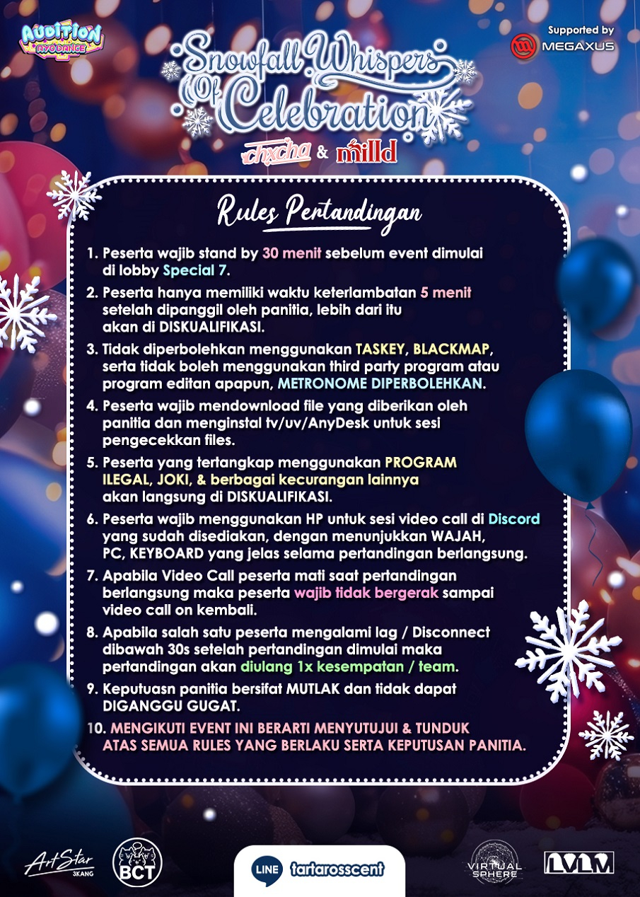 • PASTIKAN ID & NICK SESUAI KARENA DILARANG MELAKUKAN PERGANTIAN ID ATAU NICK.• Keputusan panitia bersifat mutlak.