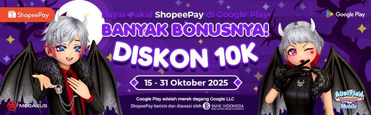Ada info terbaru nih untuk kamu gamer AyoDance Mobile, Megaxus dan ShopeePay akan memberikan diskon 10k untuk setiap transaksi yang berlangsung di dalam game AyoDance Mobile dengan memilih pembayaran menggunakan ShopeePay di Google Play.